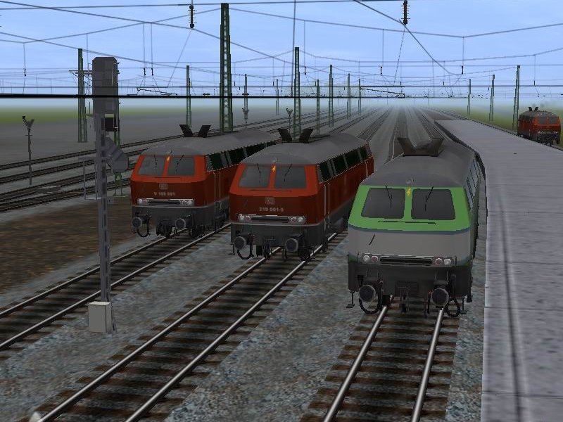 die 218 aus dem Paintshed Packet als Reskin zur V169 001 in ihren bisherigen 3 Farbkleidern. Download in der DLS von Auran.
